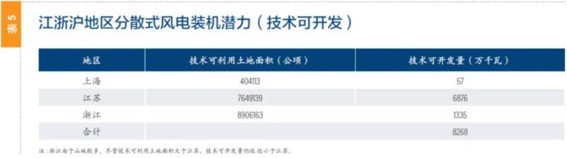 表5 江浙滬地區(qū)分散式風(fēng)電裝機(jī)潛力(技術(shù)可開發(fā))