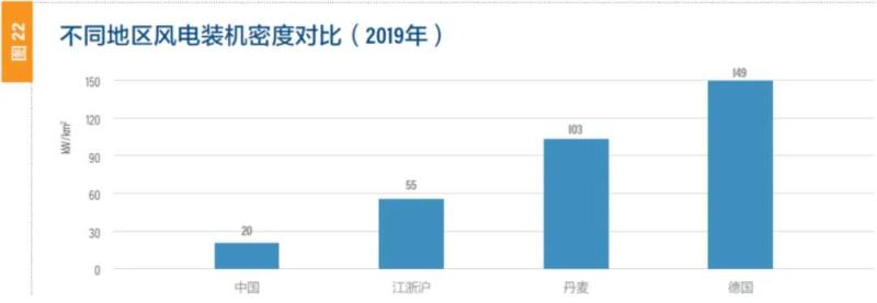 圖22 不同地區(qū)風(fēng)電裝機(jī)密度對比(2019年)