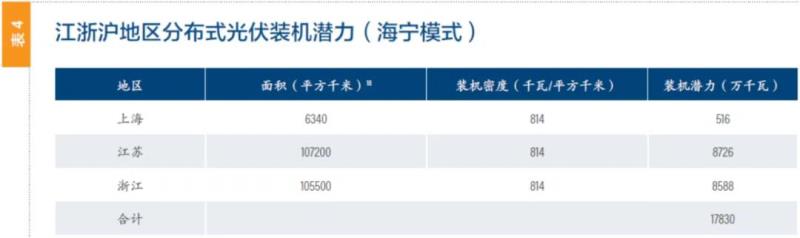 表4 江浙滬地區(qū)分布式光伏裝機(jī)潛力(海寧模式)