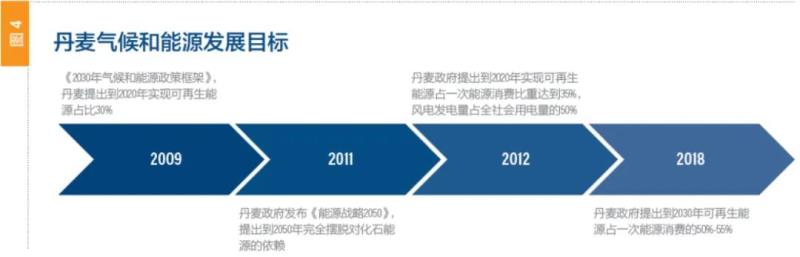 丹麥?zhǔn)侨蝻L(fēng)電發(fā)展最為領(lǐng)先的國家之一,一個(gè)關(guān)鍵因素就是,在歐盟整體低碳轉(zhuǎn)型的框架下,丹麥政府制定了明確的氣候和能源戰(zhàn)略目標(biāo)(見圖4),到2050年完全擺脫對化石能源的依賴。