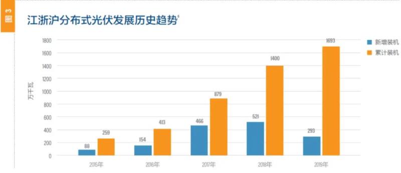 圖3 江浙滬分布式光伏歷史發(fā)展趨勢
