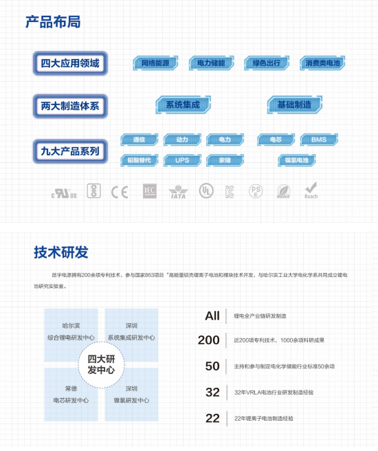 昆宇電源擁有六大智造基地,占地1000畝,廠房面積30萬平方米;四大研發(fā)中心提供技術(shù)保障;九大產(chǎn)品系列(電芯、BMS、通信、UPS、電力、家儲、動力、鉛酸替代、圓柱鎳氫電池和鋰電池),200余種產(chǎn)品類別。公司產(chǎn)品通過了美國UL、歐盟CE、韓國KC、印度BIS等眾多海外資質(zhì)認(rèn)證。