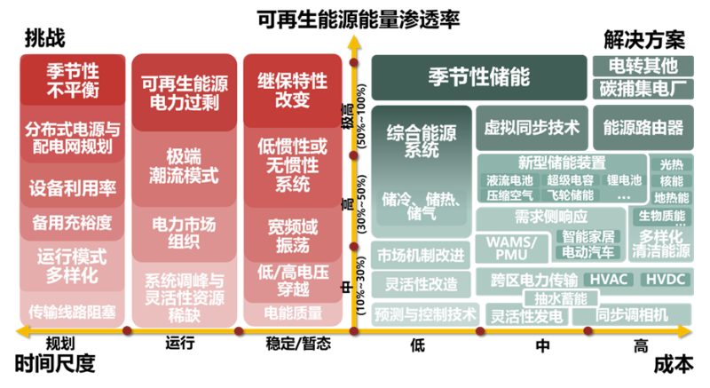 圖9 高比例可再生能源挑戰(zhàn)與技術解決方案對應關系