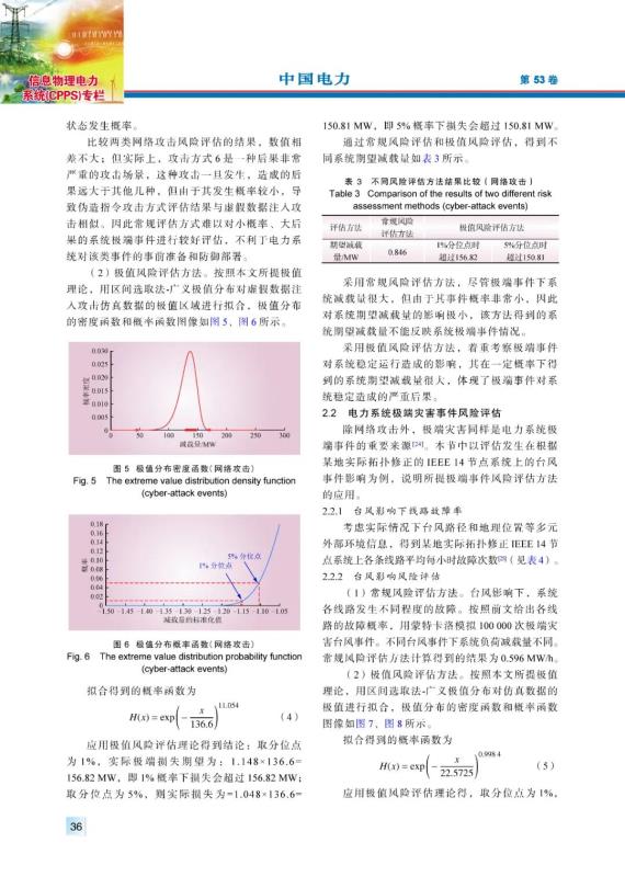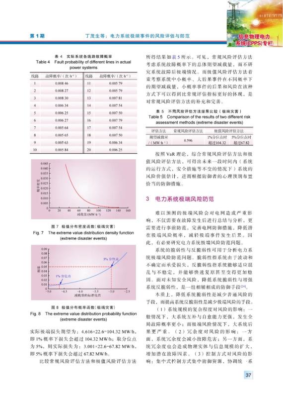 摘要:傳統(tǒng)電力系統(tǒng)風(fēng)險(xiǎn)評(píng)估方法以普通風(fēng)險(xiǎn)為研究對(duì)象,無(wú)法體現(xiàn)極端事件對(duì)系統(tǒng)運(yùn)行帶來(lái)的破壞性影響。基于金融領(lǐng)域風(fēng)險(xiǎn)價(jià)值理論,提出一種電力系統(tǒng)極端風(fēng)險(xiǎn)評(píng)估與量化方法,對(duì)傳統(tǒng)風(fēng)險(xiǎn)評(píng)估方法進(jìn)行補(bǔ)充和完善。采用極值風(fēng)險(xiǎn)評(píng)估方法,著重考察極端事件對(duì)系統(tǒng)穩(wěn)定運(yùn)行造成的影響,體現(xiàn)了小概率極端事件對(duì)系統(tǒng)穩(wěn)定造成的嚴(yán)重后果?;陔娏ο到y(tǒng)網(wǎng)絡(luò)攻擊事件和極端災(zāi)害事件進(jìn)行極端風(fēng)險(xiǎn)評(píng)估,對(duì)比常規(guī)風(fēng)險(xiǎn)與極值風(fēng)險(xiǎn)評(píng)估結(jié)果,驗(yàn)證了所提的極端風(fēng)險(xiǎn)評(píng)估方法的合理性。同時(shí),基于電力系統(tǒng)脆弱性與反脆弱性特征,提出極端風(fēng)險(xiǎn)防范的關(guān)鍵難點(diǎn)在于如何協(xié)調(diào)普通風(fēng)險(xiǎn)與極端風(fēng)險(xiǎn)。
