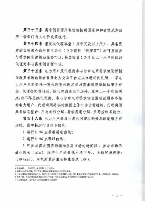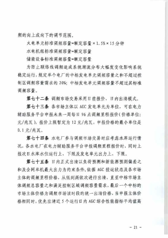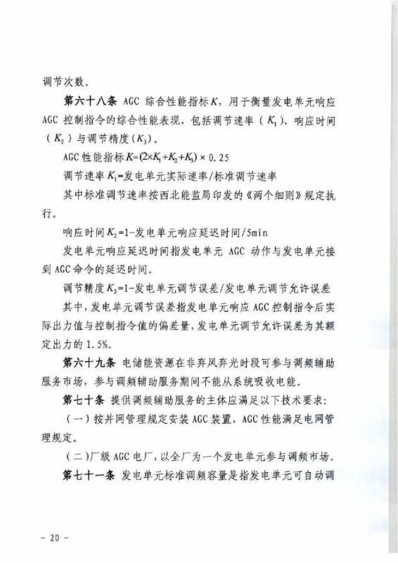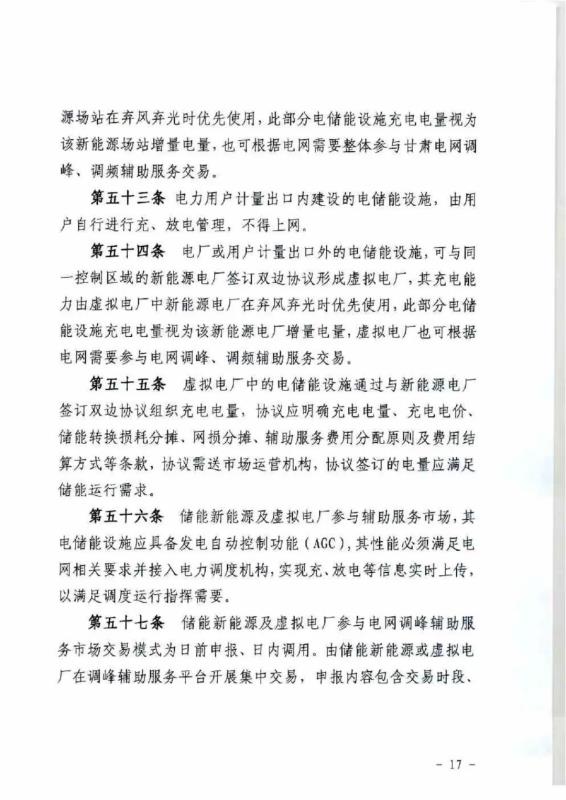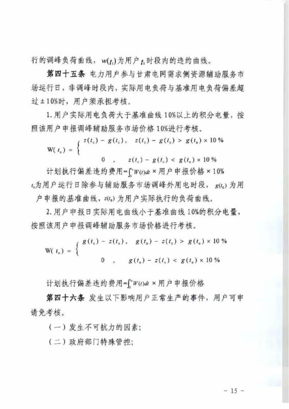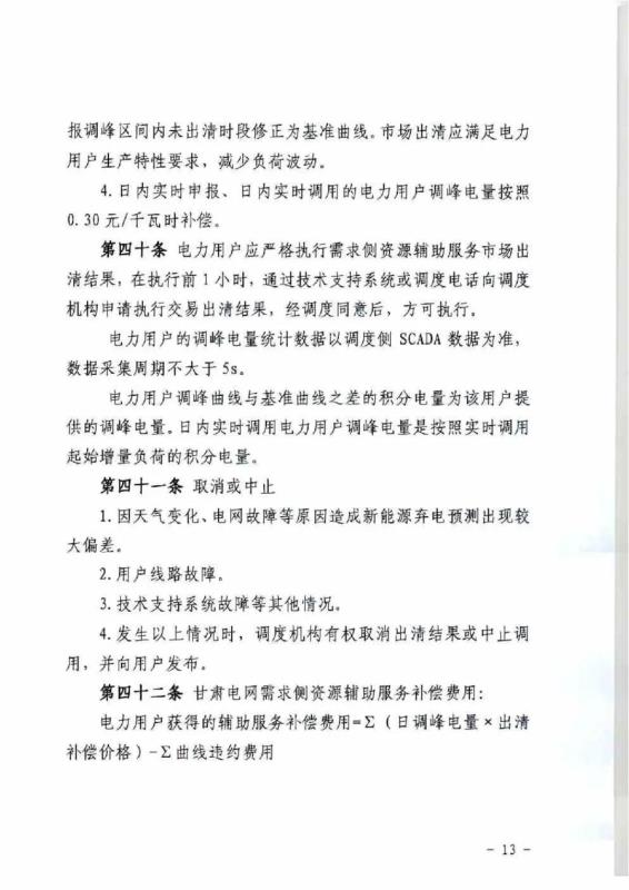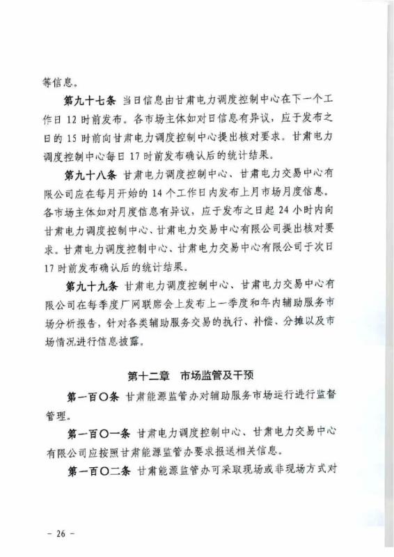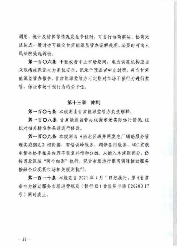 中國儲能網(wǎng)訊:4月10日,國家能源局甘肅監(jiān)管辦公室發(fā)布關(guān)于征求《甘肅省電力輔助服務(wù)市場運營規(guī)則(征求意見稿)》意見的函,意見稿規(guī)則較2019年發(fā)布的暫行補償價格有較大改變。調(diào)頻輔助服務(wù)補償價格由上限15元/MW下調(diào)至12元/MW。調(diào)峰輔助服務(wù)申報價格非現(xiàn)貨期間為0.5元/kWh,現(xiàn)貨期間為0.3元/kWh。