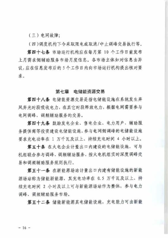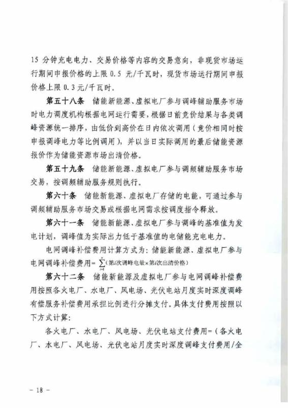 新能源場站儲能或虛擬電廠在調(diào)峰輔助服務(wù)平臺開展集中交易,申報價格由2019年版的上限0.2元/kWh,提升為非現(xiàn)貨市場運行期間上限0.5元/kWh,現(xiàn)貨市場運行期間上限0.3元/kWh。