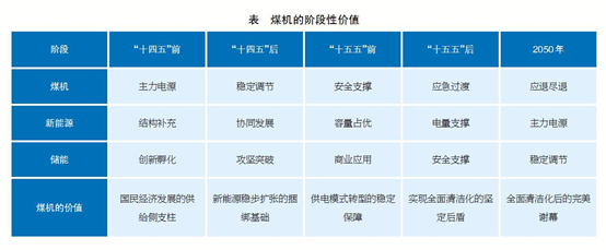 “十四五”后煤電發(fā)展情景描述?!笆奈濉焙螅袌鲂枨蟀l(fā)生了變化,各主體成長階段逐步遞進,煤電在不同時期,會體現(xiàn)出不同的特性。以下試著從不同角色的市場性表征來描繪煤機的階段性價值(見表)。