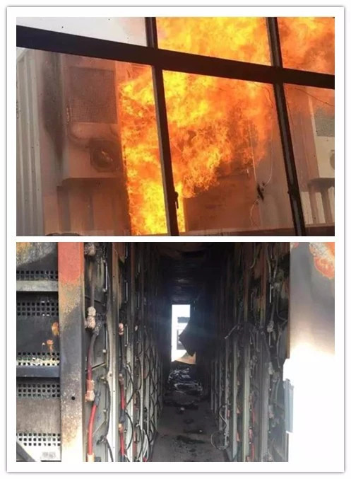 2019年8月,有報道稱江蘇鎮(zhèn)江的用戶側儲能項目出現了大量的電池因冒煙而更換的現象。其中鎮(zhèn)江揚中某用戶側儲能項目,采用的磷酸鐵鋰電池集裝箱安裝方式,在8月初起火并燒毀,從圖片上看,現場非常慘烈,著火原因目前尚未通報。