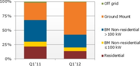 中國(guó)儲(chǔ)能網(wǎng)訊:據(jù)Solarbuzz報(bào)告說,2011年第四季度北美光伏市場(chǎng)上漲了將近一個(gè)吉瓦(GW),也在其他市場(chǎng)(如德國(guó)和亞洲市場(chǎng))產(chǎn)生強(qiáng)烈回響。新澤西州、加利福尼亞州、亞利桑那州和安大略省占這些需求的三分之一,其中一半以上是大型的地面安裝系統(tǒng)。