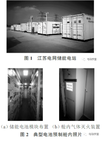 中國儲能網訊:預制艙式儲能系統(tǒng)通常采用集裝箱作為外圍護結構,將儲能電池、支架、空調通風等輔助設置在工廠中預制成一體,具有便于安裝、占地面積小、移動靈活、建設周期短等優(yōu)點,在國內外應用十分廣泛,江蘇電網預制艙式磷酸鐵鋰儲能電站如圖1和圖2所示。