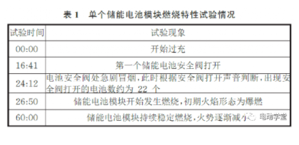 根據相關試驗現象分析可知,從儲能電池模塊開始充電到整個模塊發(fā)生燃燒,過程大致可以分為以下三個階段: