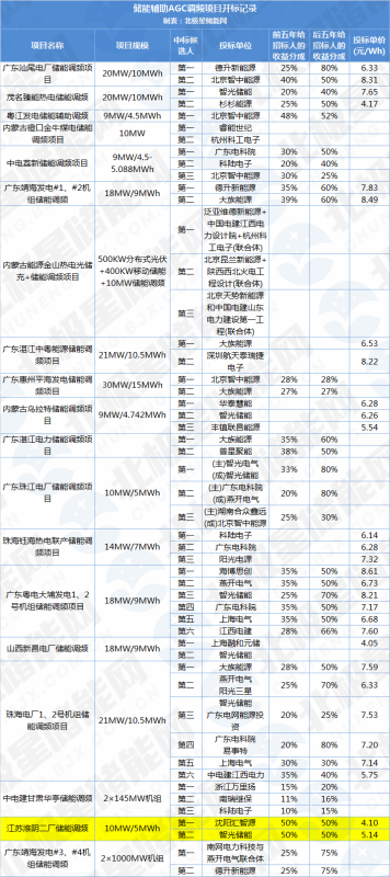 4月26日,中國華能重新發(fā)布江蘇淮陰第二發(fā)電廠儲能輔助AGC調(diào)頻工程招標(biāo)公告。據(jù)北極星儲能網(wǎng)了解,該項(xiàng)目曾于2020年12月1日發(fā)布中標(biāo)候選人結(jié)果,當(dāng)時第一中標(biāo)候選人為沈陽匯智源電力發(fā)展集團(tuán)有限公司、其投標(biāo)價格僅4.1元/Wh。(下文附儲能調(diào)頻項(xiàng)目中標(biāo)價格表)