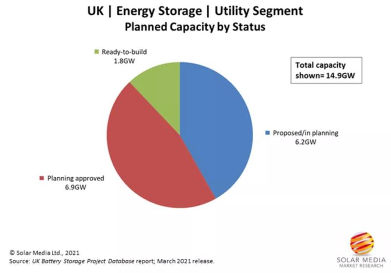 英國公用事業(yè)規(guī)模的電池儲能市場始于2017年。到目前為止,已投運的電池儲能項目規(guī)模正迅速接近1.3GW,近15GW的項目已準備好在未來幾年內(nèi)部署。