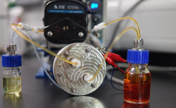 水系液流電池是一種新穎的儲(chǔ)能技術(shù),由兩種處于溶液態(tài)的電解液通過(guò)離子交換來(lái)產(chǎn)生電能。相比傳統(tǒng)鋰離子電池,液流電池的優(yōu)勢(shì)在于安全、電量輸出功率大、設(shè)計(jì)靈活,適合用于風(fēng)能、太陽(yáng)能等再生能源的電網(wǎng)儲(chǔ)能裝置,以及可快速換電的電動(dòng)交通工具等。然而,液流電池的能量密度低且成本高,較難應(yīng)用于大型電網(wǎng)儲(chǔ)能技術(shù)。