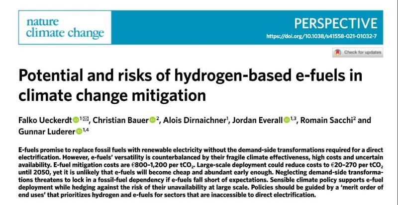 波茨坦氣候影響研究所(PIK)學(xué)者在《自然·氣候變化》雜志上發(fā)表文章指出,氫基燃料主要用于航空或工業(yè)過程等不易于電氣化的領(lǐng)域。但是,生產(chǎn)這些燃料的效率太低,成本太高,而且它們的可用性也太不確定,無法廣泛地取代化石燃料,例如汽車或供暖。對大多數(shù)行業(yè)來說,直接用電,例如在電池電動汽車或熱泵中,更具經(jīng)濟意義。依賴以氫為基礎(chǔ)的燃料,反而導(dǎo)致進一步依賴化石燃料和溫室氣體排放。