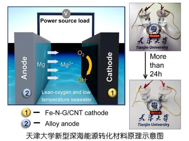 天津大學海洋學院、化工學院聯(lián)合團隊提出了“面向深海貧氧環(huán)境海水電池高效親氧催化劑”的設計策略,他們通過微波合成法制備出一種新型單原子催化劑。實驗結果顯示,這種新材料能夠在貧氧環(huán)境下進行高效氧還原催化,從而產(chǎn)生電能。用這種新材料制造的海水電池能夠在水下超千米的深海環(huán)境中穩(wěn)定供電。