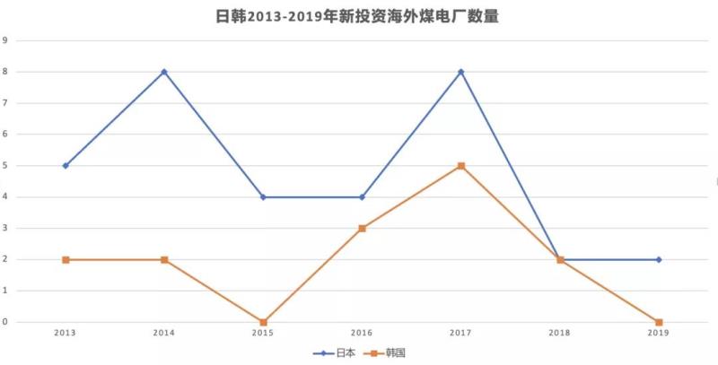 近年來,日韓的新增海外煤電投資出現(xiàn)放緩跡象?!叭蛎弘姽踩谫Y追蹤”的數(shù)據(jù)顯示,2017年以來,兩國(guó)海外融資項(xiàng)目數(shù)量均持續(xù)下降,韓國(guó)2019年無新增投資項(xiàng)目。