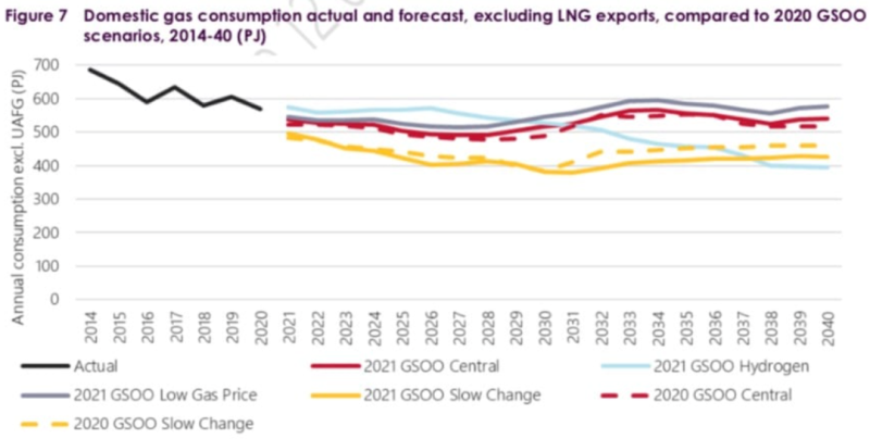 澳大利亞能源市場(chǎng)運(yùn)營(yíng)商、澳大利亞能源市場(chǎng)組織(AEMO)在其《年度天然氣機(jī)會(huì)報(bào)告》(Annual Gas Statement of Opportunities)報(bào)告中指出,未來(lái)20年澳大利亞天然氣總消費(fèi)量可能會(huì)下降,并可能因?yàn)闊o(wú)法與可再生能源或綠色氫競(jìng)爭(zhēng)而在電網(wǎng)中幾乎消失。