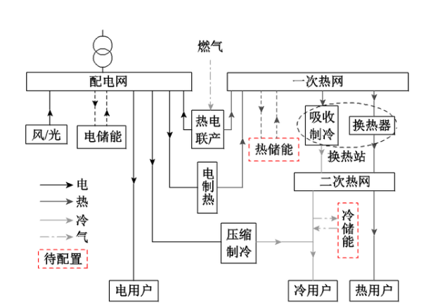 能源互聯(lián)網(wǎng)的重要物理載體——綜合能源系統(tǒng)(或稱多能源系統(tǒng)),創(chuàng)新了能源系統(tǒng)的技術(shù)、市場(chǎng)和管理體制,對(duì)提高各種能源利用效率、推動(dòng)能源利用轉(zhuǎn)型、實(shí)現(xiàn)多能源的互補(bǔ)互濟(jì)具有重要意義。綜合能源系統(tǒng)可分為跨區(qū)級(jí)、區(qū)域級(jí)和用戶級(jí),其中發(fā)揮“承上啟下”作用的區(qū)域多能源系統(tǒng)(RIES)由智能配電系統(tǒng)、供熱/冷系統(tǒng)等供能網(wǎng)絡(luò)耦合而成。