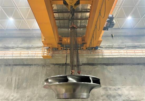 轉(zhuǎn)輪是水輪發(fā)電機(jī)組的核心部件,是將水能轉(zhuǎn)換為機(jī)械能的關(guān)鍵性部件。單個(gè)轉(zhuǎn)輪重36噸,最大直徑4480毫米,由上冠、葉片和下環(huán)組成,共9個(gè)葉片。吊裝前,項(xiàng)目部就吊裝相關(guān)事宜進(jìn)行了安全技術(shù)交底,確保了吊裝工作順利進(jìn)行。