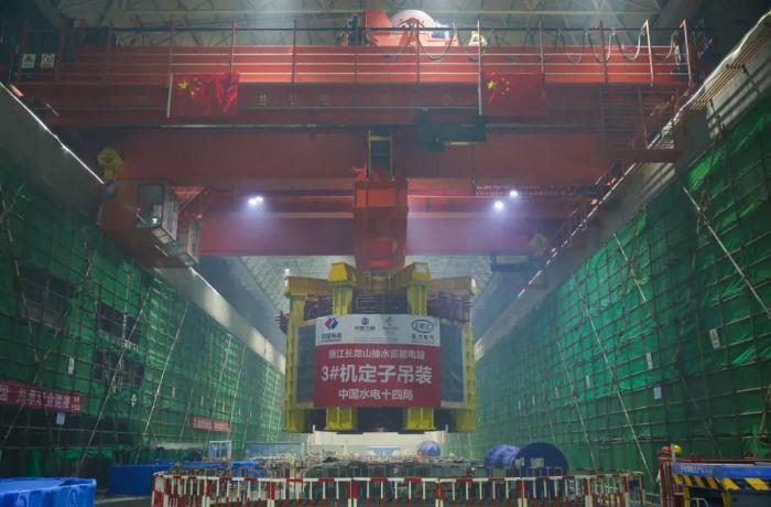 5月17日下午,三峽集團(tuán)浙江長龍山抽水蓄能電站3號(hào)機(jī)組定子順利吊裝。至此,該工程6臺(tái)機(jī)組已有3臺(tái)完成定子吊裝,標(biāo)志著電站機(jī)組安裝工作步入快車道。