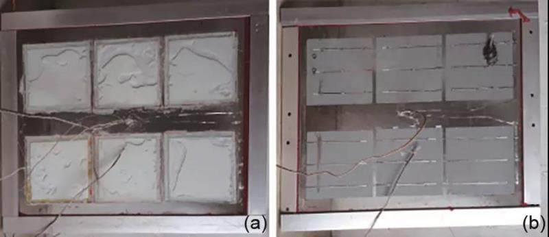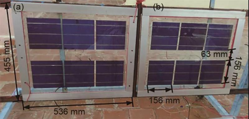 圖4 (a) 裝有PCM的半透明光伏建筑一體化系統(tǒng)背面(b) 沒有PCM的半透明光伏建筑一體化系統(tǒng)背面