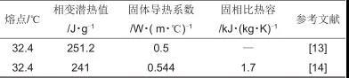 十水硫酸鈉(Na2SO4·10H2O)是目前研究較為廣泛的一種無機(jī)水合鹽相變材料,它是一種白色或無色透明晶體,單斜晶系、易風(fēng)化、味苦咸、溶于水,不溶于乙醇,呈芒狀或顆粒狀小晶體的集合體,或呈硬殼狀和微密鹽塊狀,其熱物性見表1。