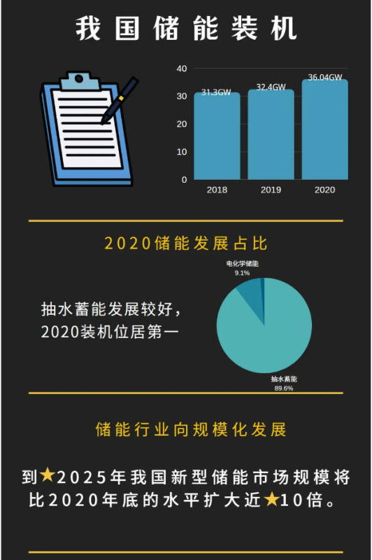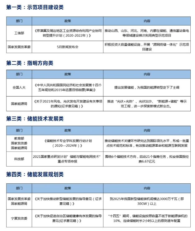 2021年4月21日,國家發(fā)革委和國家能源局聯(lián)合發(fā)布了《關(guān)于加快推動新型儲能發(fā)展的指導(dǎo)意見(征求意見稿)》。其中提出“到2025年,實(shí)現(xiàn)新型儲能從商業(yè)化初期向規(guī)?;l(fā)展轉(zhuǎn)變,新型儲能裝機(jī)規(guī)模達(dá) 3000 萬千瓦以上;到2030年,實(shí)現(xiàn)新型儲能全面市場化發(fā)展”的主要目標(biāo)?!?