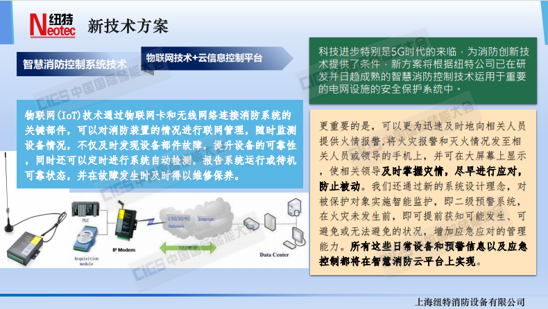 另外我們提到一個(gè)很重要的問(wèn)題,就是我先前說(shuō)的,我們做好的技術(shù),如果沒(méi)有后管理、沒(méi)有維護(hù)保養(yǎng),我們的系統(tǒng)是有問(wèn)題的。我們也發(fā)現(xiàn)消防的設(shè)備在儲(chǔ)能電池集裝箱里面常常會(huì)發(fā)現(xiàn)一些電器設(shè)備會(huì)受整個(gè)磁場(chǎng)或者其他因素的干擾,造成設(shè)備有時(shí)候會(huì)出故障,由此我們就在考慮營(yíng)運(yùn)管理要有適當(dāng)?shù)姆绞?,現(xiàn)在是5G時(shí)代,我們可以做一些物聯(lián)網(wǎng),通過(guò)物聯(lián)網(wǎng)的方式能夠?qū)ο姥b置進(jìn)行聯(lián)網(wǎng)管理,隨時(shí)監(jiān)測(cè)設(shè)備的情況,及時(shí)發(fā)現(xiàn)故障,提升設(shè)備的可靠性,這是我們現(xiàn)在正在思考,研發(fā)成功并且已經(jīng)在應(yīng)用了。比如說(shuō)我們已經(jīng)在應(yīng)用的分區(qū)閥物聯(lián)網(wǎng)連接件,因?yàn)殚y是控制系統(tǒng),如果它出了故障,啟動(dòng)不了的話,打不開(kāi)的時(shí)候,我們所有的系統(tǒng)就沒(méi)有用了,你探測(cè)了以后沒(méi)辦法滅火,滅火劑也輸送了,可是被我們的閥擋住了,打不開(kāi),怎么辦?所以這個(gè)檢測(cè)也非常難檢測(cè),平時(shí)做維護(hù),我們?nèi)タ?,看不到;去測(cè),也不知道它里面的閥心是不是打開(kāi)了。所以我們已經(jīng)應(yīng)用在電池制造業(yè)的產(chǎn)線上,用這個(gè)閥里面的物聯(lián)網(wǎng),可以用手動(dòng)點(diǎn)擊或者定期自動(dòng)進(jìn)行監(jiān)測(cè)和探測(cè),檢測(cè)它打開(kāi)和關(guān)閉。所以只要一點(diǎn)擊,一千個(gè)閥全部打開(kāi),再點(diǎn)擊,一千個(gè)閥全部關(guān)閉,所有的數(shù)據(jù)自成報(bào)告,我們就知道這個(gè)閥能否打開(kāi)。這樣的話,這些系統(tǒng)就能有保障。如果報(bào)告當(dāng)中發(fā)現(xiàn)某一個(gè),我們每一個(gè)都帶地址,有模塊,就會(huì)發(fā)現(xiàn)某一個(gè)閥打不開(kāi),需要做維護(hù)去修去更換等等,所以這是非常重要。比方說(shuō)我們的容器閥可以測(cè)容器里面的壓力,如果壓力泄露了,我們就馬上知道這個(gè)泄露了,要加壓或者更換。除了這個(gè)之外,我們的探測(cè)、報(bào)警,系統(tǒng)一旦火災(zāi)了,馬上要報(bào)警,報(bào)警很快可以達(dá)到我們的主機(jī)上,但是有的時(shí)候主機(jī)在現(xiàn)場(chǎng),沒(méi)有人,我們已經(jīng)遇到過(guò)好幾次,其他的幾個(gè)項(xiàng)目不是儲(chǔ)能的?;馂?zāi)已經(jīng)起來(lái)了,系統(tǒng)動(dòng)作了,沒(méi)有人,不知道。所以我們可以通過(guò)主機(jī)發(fā)送信息到我們的云平臺(tái)甚至到我們的手機(jī)上,這些設(shè)備全部要做到聯(lián)網(wǎng)。其中我剛才提到的傳感器,傳感器上可以實(shí)時(shí)顯示有沒(méi)有氫氣,因?yàn)闅錃馐强梢院苋菀仔孤冻鰜?lái),所以我們最早可以測(cè)出氫氣,氫氣一測(cè)出來(lái)我們就知道熱失控了,里面有一些氣化了,那時(shí)候我們就可以采取一些措施,因?yàn)樗梢詫?shí)時(shí)顯示,所以我們可以做分級(jí)的預(yù)警。