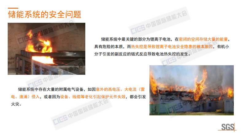 我的演講題目分為四個部分:一、鋰離子電池系統(tǒng)的安全問題;二、鋰離子電池系統(tǒng)安全風(fēng)險原因分析;三、鋰離子電池系統(tǒng)相關(guān)國際標準概述;四、關(guān)于SGS。