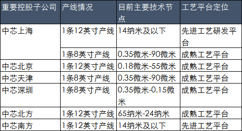 截至2019年中芯國(guó)際各產(chǎn)線情況