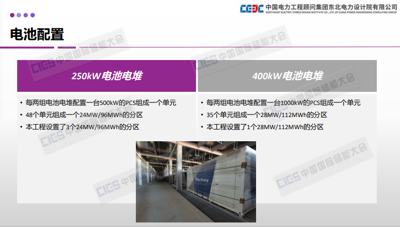 在這個電站里配備了兩種規(guī)格的電池,一種是250KW電池電堆,一種是400KW電池電堆,形成了三個分區(qū),3個24WM的分區(qū)和1個28MW的分區(qū),加在一起正好是100MW/400MWh。時至今日,這個電站的容量規(guī)模算的上是一個最大的電化學(xué)儲能電站。
