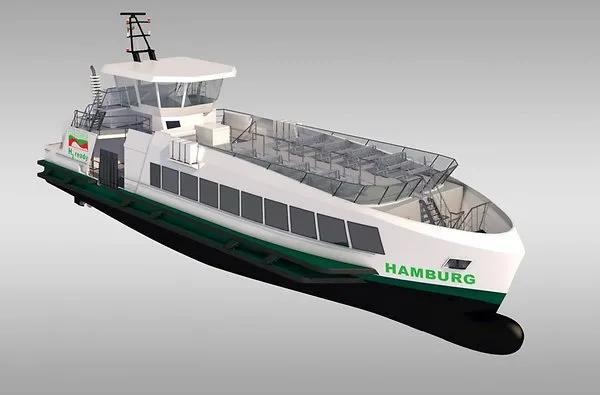 新船舶的概念是盡可能完全避免排放,特別是溫室氣體。所以在設(shè)計(jì)時(shí),效率也是一個(gè)優(yōu)先考慮的因素。為了減少能源消耗,新的HADAG渡輪長(zhǎng)約33米。乘客在上船時(shí)不會(huì)直接進(jìn)入內(nèi)部或外部樓梯,而是首先進(jìn)入一個(gè)大的外部甲板,乘客可以從那里分流,幫助旅客更快上下船,從而減少燃料消耗。目前HADAG計(jì)劃再增加兩艘全新氫混合動(dòng)力船舶。