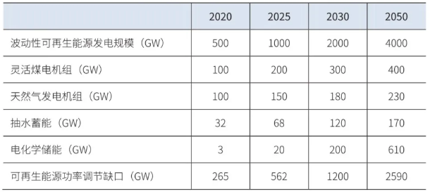 圖表1:傳統(tǒng)調(diào)峰儲(chǔ)能方案下未來的可再生能源功率調(diào)節(jié)缺口(源自車百智庫)