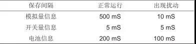 現(xiàn)有儲能艙就地監(jiān)控系統(tǒng)或BMS單體采集間隔大于100 mS,電池堆端和簇端的模擬量采集間隔大于10 mS。在此基礎(chǔ)上,數(shù)據(jù)記錄單元存儲艙內(nèi)全時段完整數(shù)據(jù)并在故障時進(jìn)行錄波,按照表1的要求進(jìn)行保存。