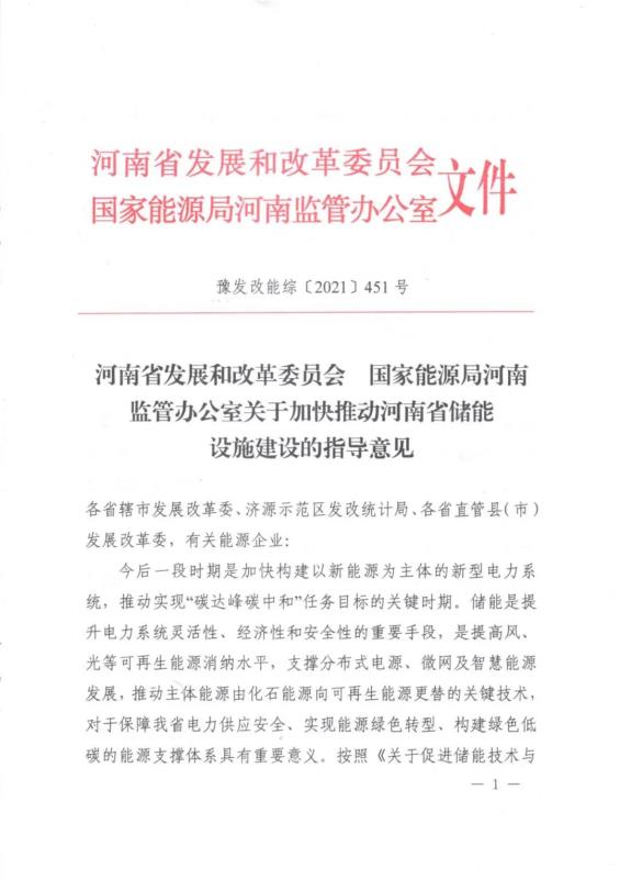 中國(guó)儲(chǔ)能網(wǎng)訊:日前,河南省發(fā)改委及河南能監(jiān)辦發(fā)布《關(guān)于加快推動(dòng)河南省儲(chǔ)能設(shè)施建設(shè)的指導(dǎo)意見(jiàn)》明確儲(chǔ)能是提升電力系統(tǒng)靈活性、經(jīng)濟(jì)性和安全性的重要手段,是提高風(fēng)、光等可再生能源消納水平,推動(dòng)主體能源由化石能源向可再生能源更替的關(guān)鍵技術(shù)。