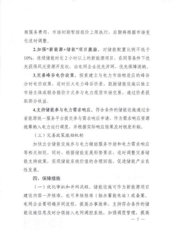 文件指出,鼓勵(lì)新能源項(xiàng)目配套建設(shè)儲(chǔ)能。對(duì)儲(chǔ)能配置比例不低于10%、連續(xù)儲(chǔ)能時(shí)長(zhǎng)2小時(shí)以上的新能源項(xiàng)目,在同等條件下優(yōu)先獲得風(fēng)光資源開(kāi)發(fā)權(quán),由電網(wǎng)企業(yè)優(yōu)先并網(wǎng)、優(yōu)先保障消納。