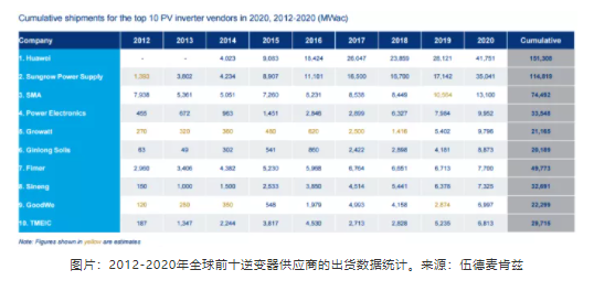 圖片:2020年全球變器供應(yīng)商出貨占比排名。來(lái)源:伍德麥肯茲