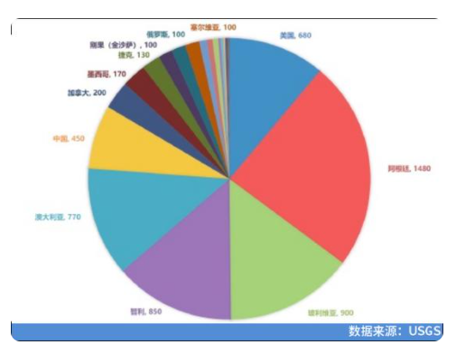 自然資源方面,美國也并無優(yōu)勢,雖然根據(jù)美國地質(zhì)勘探局USGS的數(shù)據(jù)(圖2),全球探明鋰資源約6200萬噸,美國儲量約680萬噸,占比11%,位居世界第五,排在阿根廷、玻利維亞、智利、澳大利亞之后。但可開采儲量方面,美國就非常有限了,鹽湖鹵水型鋰資源主要分布在南美鋰三角——阿根廷、智利、玻利維亞以及中國,固態(tài)鋰輝石資源主要分布在澳大利亞。