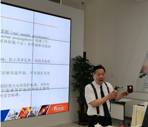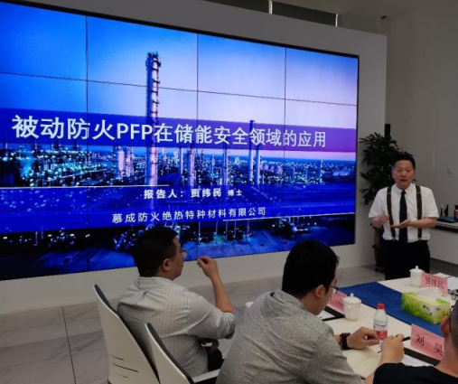 會(huì)議開(kāi)始,公司首席科學(xué)家賈緯民博士以“被動(dòng)防火PFP在儲(chǔ)能安全領(lǐng)域的應(yīng)用”為調(diào)研團(tuán)專(zhuān)家做主題分享。