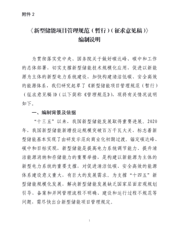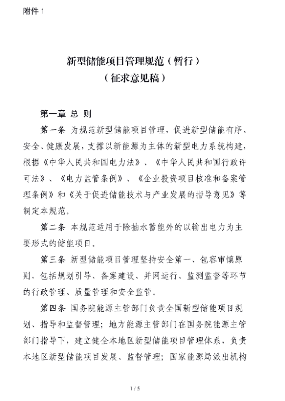 1. 新型儲(chǔ)能項(xiàng)目管理規(guī)范(暫行)(征求意見稿)