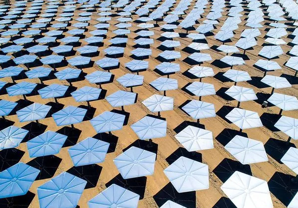 中國儲能網(wǎng)訊:6月18日,新疆哈密塔式5萬千瓦光熱發(fā)電項目完成地面14500面巨蜥式定日鏡的安裝調(diào)試,進入穩(wěn)定發(fā)電期。從空中俯瞰,宛如一大片“銀色向日葵”。