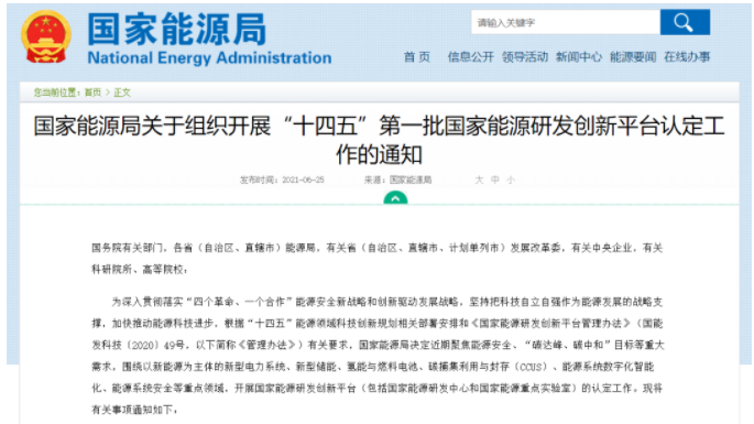 國家能源局關(guān)于組織開展“十四五”第一批國家能源研發(fā)創(chuàng)新平臺認(rèn)定工作的通知