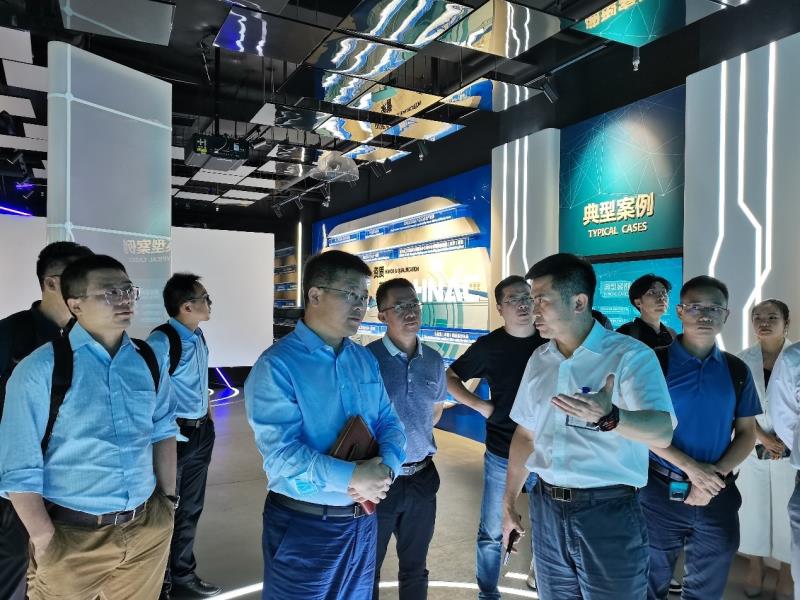 座談結束后,調研團一行在華自科技領導的陪同下,來到欣盛路產業(yè)基地參觀長沙華能自控集團展廳。集團相關負責人就集團架構、發(fā)展背景、產業(yè)布局等多個方面向專家們作了詳細介紹。
