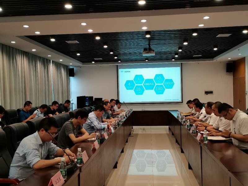 參觀結束后,雙方進行了交流座談。華自科技副總裁兼能源事業(yè)部總經理蔣青山、華自科技研究院副院長桂勇華分別就公司儲能產業(yè)規(guī)劃、技術創(chuàng)新、系統(tǒng)集成能力、產品應用、項目投資等方面向專家們做了詳細介紹。同時,還就當前發(fā)展中遇到的相關問題及看法與專家們做了深入交流。