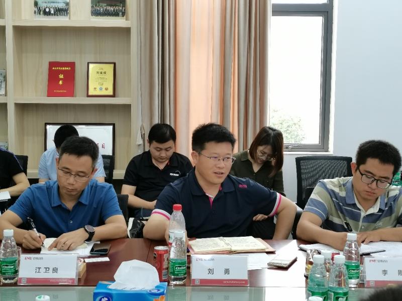 參觀結(jié)束后,梁榮斌等相關(guān)領(lǐng)導和調(diào)研團專家進行了深入交流座談,會議開始,億緯動力相關(guān)負責人重點從公司背景、主推儲能產(chǎn)品和應用場景三個方面向?qū)<覀冏隽酥攸c介紹。