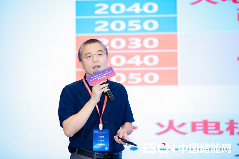 中國電力科學(xué)研究院技術(shù)戰(zhàn)略研究中心副主任趙強做了關(guān)于新型電力系統(tǒng)規(guī)?;瘍δ軕?yīng)用探討的報告,報告立足雙碳目標(biāo)下我國未來能源電力發(fā)展場景,通過多個維度的仿真算例研究,分析了儲能容量和配置區(qū)域?qū)Υ龠M新能源消納的作用及其演變規(guī)律,最后對儲能在提高電網(wǎng)頻率穩(wěn)定性方面的功能定位進行了探討。