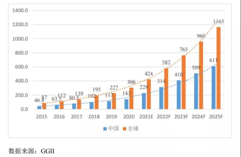 根據(jù) GGII 預測,到 2025 年全球鋰電池市場出貨量將達到 1165GWh,中國鋰電池出貨量將達到611GWh。