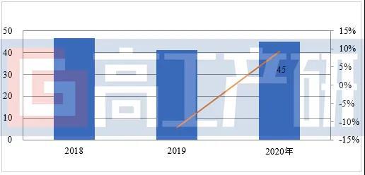 據(jù)高工產(chǎn)研鋰電研究所(GGII)數(shù)據(jù)調(diào)研顯示,2020年中國磷酸鐵鋰正極材料出貨量大幅增長,出貨12.4萬噸,同比增長41%,市場規(guī)模約45億元。