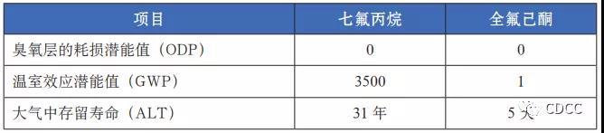 表 3 七氟丙烷與全氟己酮滅火劑環(huán)保性對比表